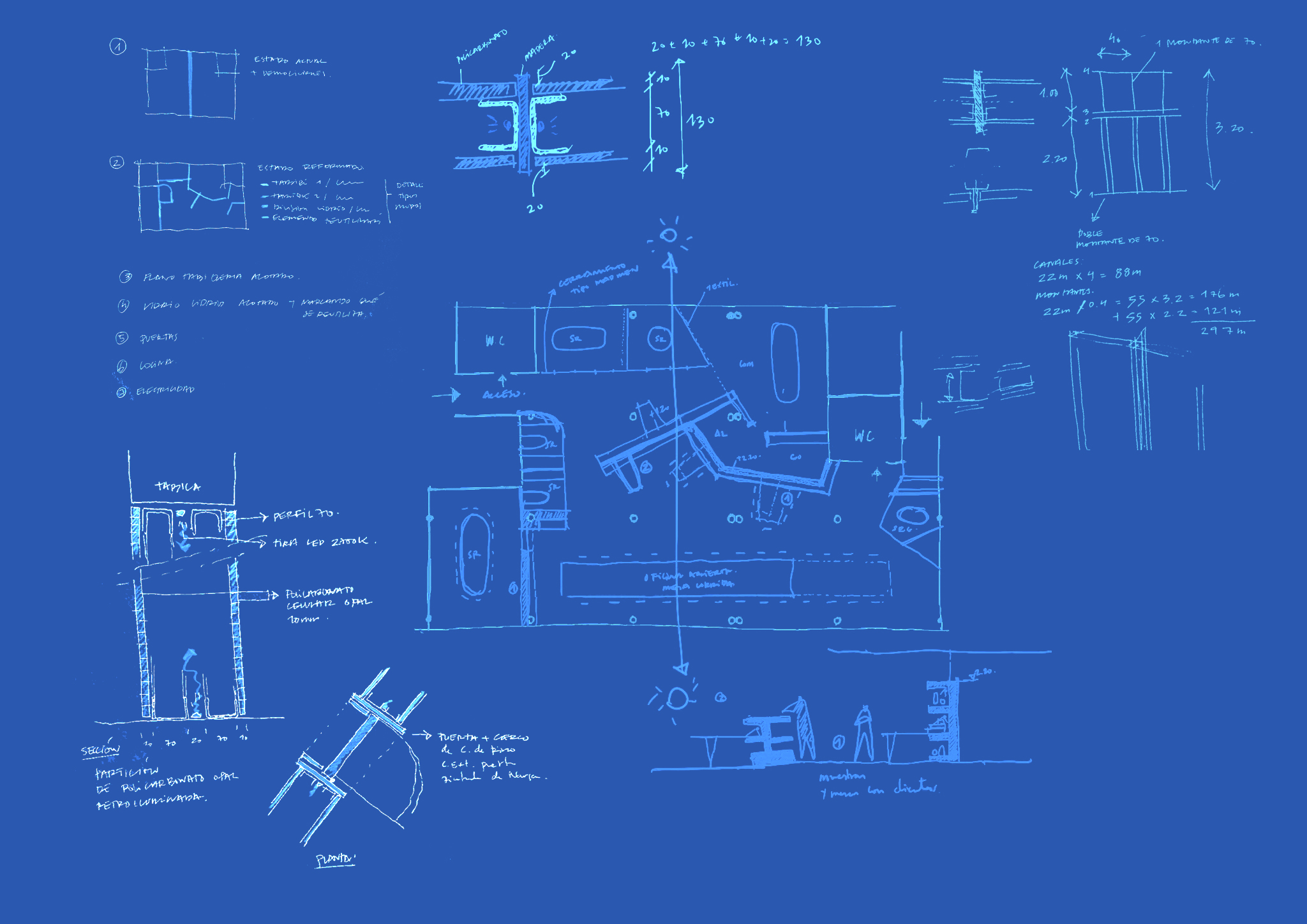 El espacio existente estaba condicionado por dos largos ventanales de visiones radicalmente opuestas.